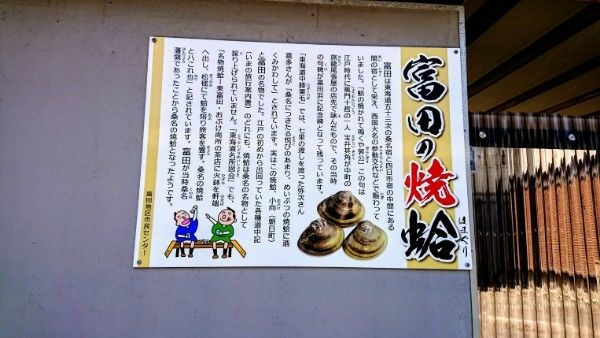 富田(とみだ)の立場にいたりけるに、爰(こゝ)はことに燒蛤の名物、兩側に、茶屋、軒をならべ、往來を呼び立つる聲にひかれて、茶屋に立寄り、